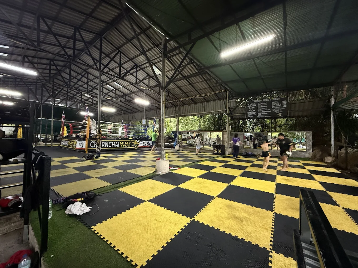 Charnchai est conçu pour accueillir des pratiquants de tous niveaux – débutants, intermédiaires, confirmés – avec une approche personnalisée de l’entraînement. Le rythme des sessions typiques est de deux entraînements collectifs par jour du lundi au samedi, matin et après‑midi.