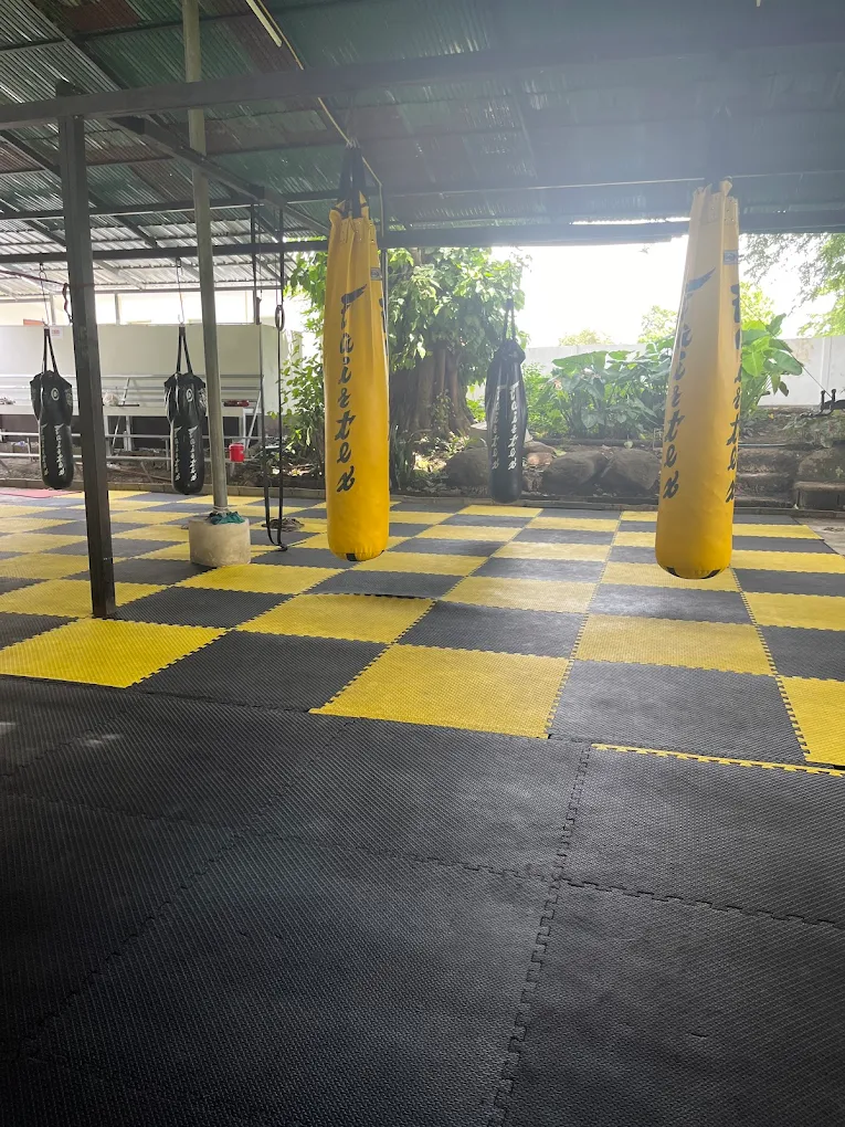 Le gym est situé dans un environnement plus rural et relax, favorable à la concentration et au repos actif ; l’accès depuis les grandes villes est plus « hors des sentiers battus », ce qui offre une ambiance différente des camps insulaires. Le cadre est paisible, souvent cité pour sa communauté chaleureuse et son esprit « famille Muay Thai ».